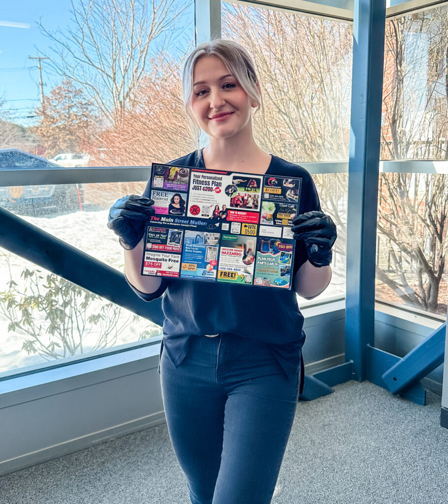 60,000 flyers placed in top local community spots (doctor’s offices, retail stores, etc.), so people see you all over multiple towns while they are out shopping and running errands.
